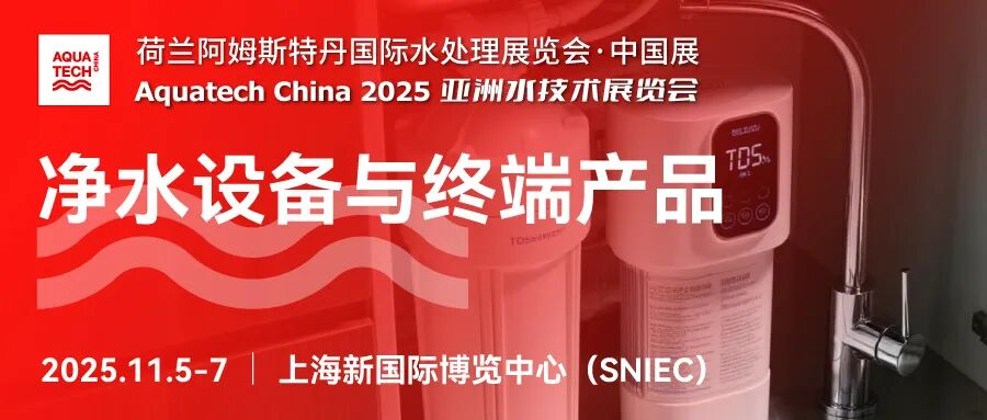 荷兰阿姆斯特丹国际水处理展览会·中国展暨Aquatech China 2025亚洲水技术展览会将于2025年11月5-7日在上海新国际博览中心(E6、E7馆)盛大举办。展会打造30,000㎡超级展览盛宴,展会观众遍布全球75处国家或地区,汇聚超500家参展品牌其展品覆盖水处理全产业链,包含净水、水与污水处理、给排水管网及泵管阀、过程控制与自动化管理领域。本届展会同期举办前沿高峰论坛将结合健康水家电、饮用水健康、市政供排水、膜与海水淡化、化工水环境、AI+智慧水务、水与污水处理等热门话题,探讨水处理前沿行业动态及发展趋势在工业脱色/去离子、应急净水、医疗/食品级水杀菌、家用净水及其二次消毒等应用场景的运用。